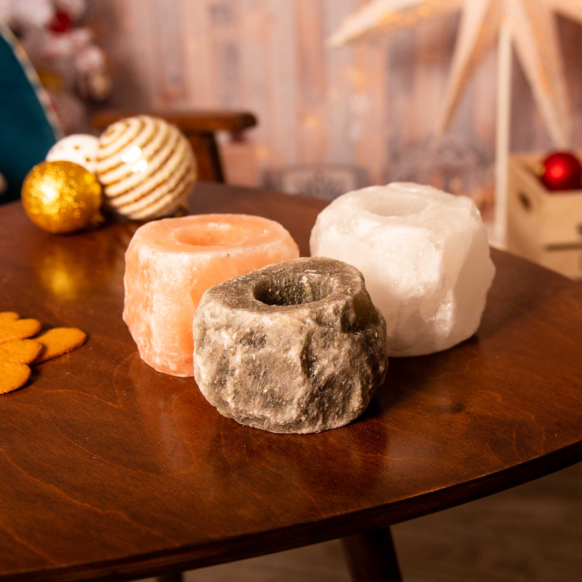 • 1db rózsaszín, 1db fehér és 1db szürke csiszolatlan sómécses