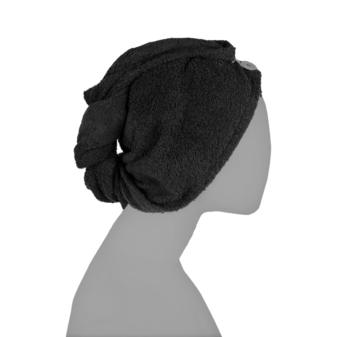 Fekete frottír hajszárító turbán