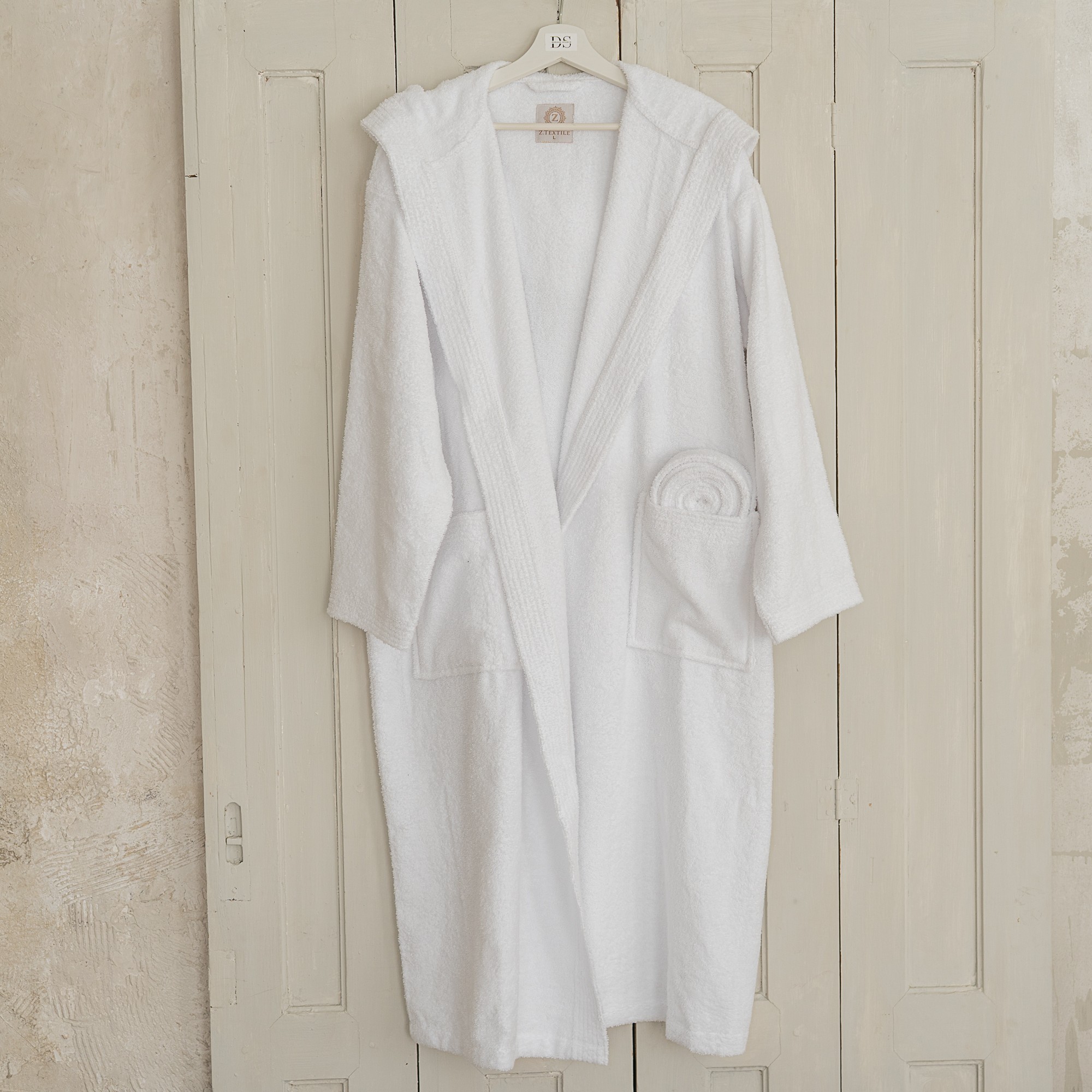Szállodai frottír fürdőköntös kapucnival
